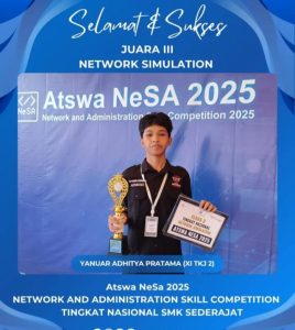 Jember, antv7 – Prestasi membanggakan kembali lahir dari Kabupaten Jember. Bian Alfarizi, siswa kelas XII jurusan Teknik Komputer dan Jaringan (TKJ) 1 SMKN 2 Jember, berhasil meraih Juara II dalam ajang Atswa NeSa 2025 Network and Administration Skill Competition tingkat nasional.